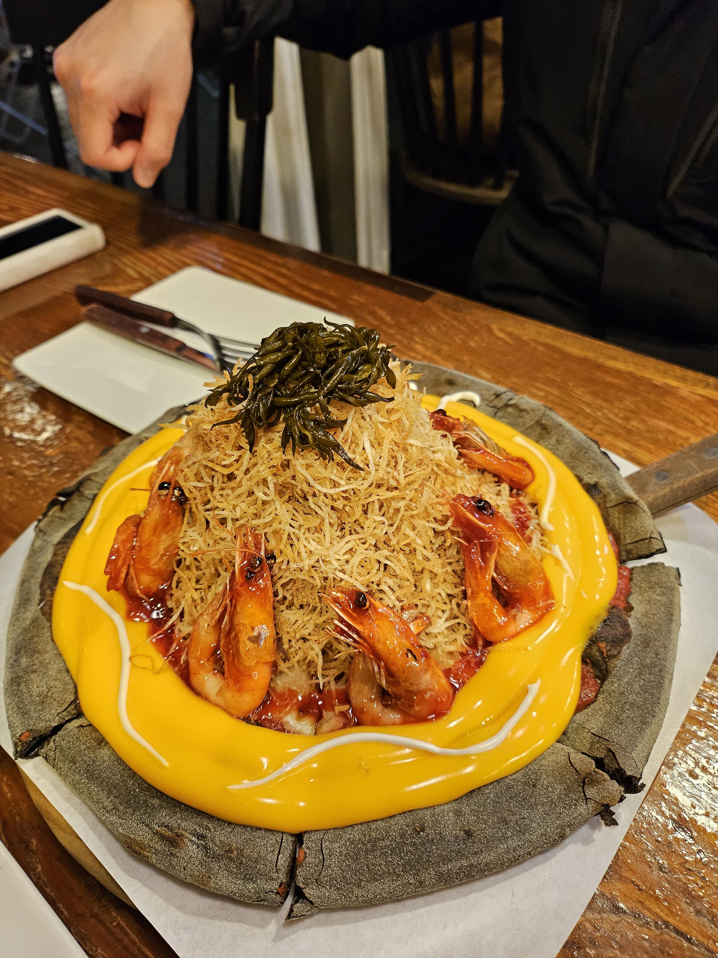 하지만 우리는 매장에서 이용하였고 39,000원에 해녀 톳도우 한라산용암피자 를 맛볼수있었다!!